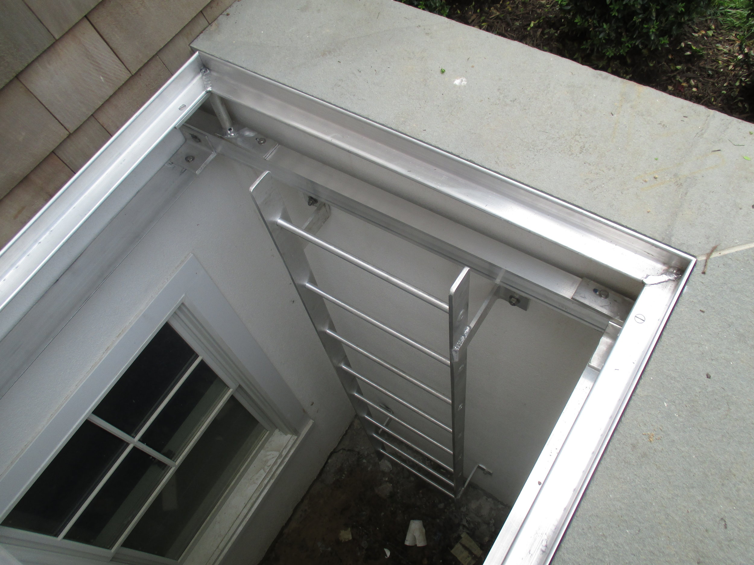 Below are some photos of our window well grates and ladders. Eastern Welding fabricates this type of cover for all types of pits, storm drains, and custom installations.